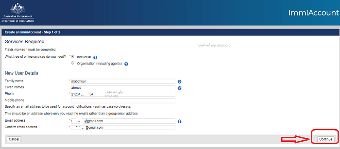 أو ل شيء يجب عليك القيام به هو انشاء حساب حتى تتمكن من الدخول للموقع الرسمي لتقديم طلب الحصول على تاشيرة استراليا 2024 من أجل البدء في ملء الاستمارة.