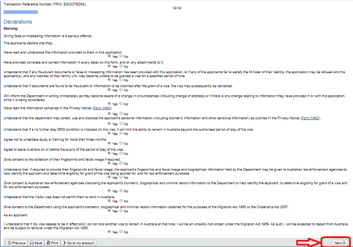 سيكون عليك قراءة كل شرط حدة والموافقة عليه إن أردت الاستمرار في تقديم طلب الفيزا الاسترالية.