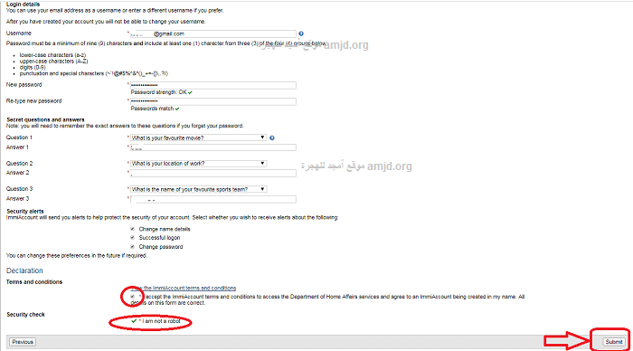 لهذا قم بالضغط على زر Create ImmiAccount كما هو مبين في الصورة أسفله