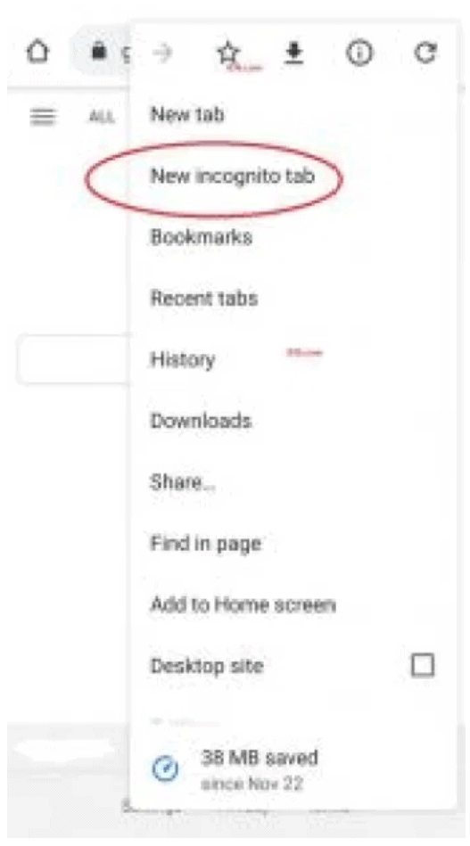 و يمكنك فتح نافذة المتصفح المتخفي بالنقر على الاختيارات في اعلى يمين الصفحة.