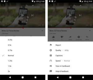 على سطح موقع يوتيوب، سوف يتمكن المستخدمون من التحكم في سرعة تشغيل مقاطع الفيديو لبعض الوقت. حيث تسمح هذه الميزة بتشغيل الفيديو بشكل أسرع أو أبطأ من سرعة تحميله الأصلية، ولم تكن هذه الإعدادات متاحة من قبل على تطبيق يوتيوب للهواتف الذكية.