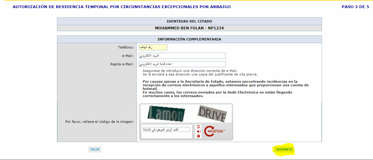 اذا لم تكن تفهم اللغة الإسبانية فنحن سنقدم لك ترجمة لكل الأسئلة المتواجدة في الإستمارة بالعربية ما عليك إلا تتبع الخطوات الموجودة في الصور أدناه